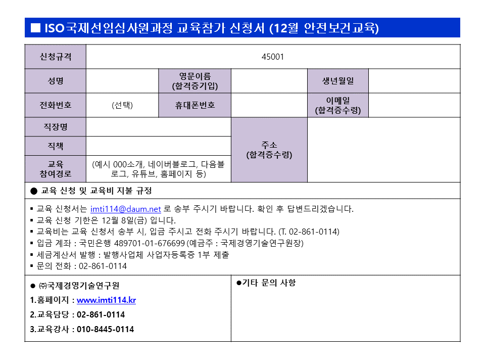 Á¦92ȸ ISO 45001 ±¹Á¦¼±ÀÓ½É»ç¿ø(º¸)¾ç¼º ±³À°